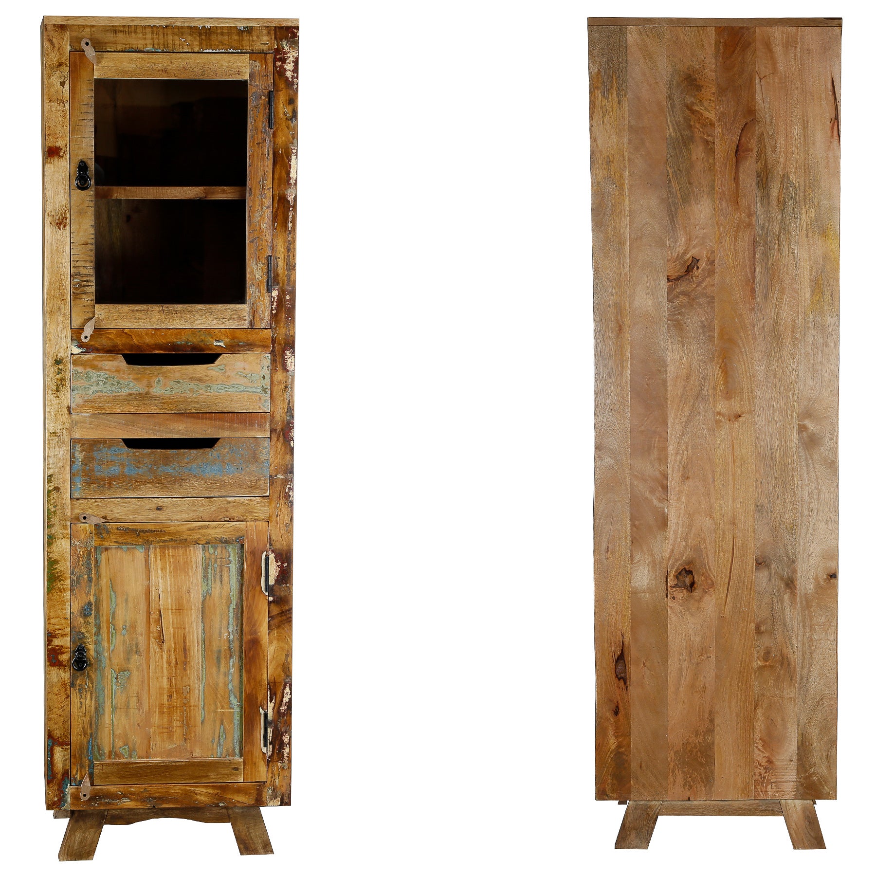 Made from reclaimed mango wood, this cabinet is made from material that has already lived: recovered from fallen trees, old boats and beams, floors and support beams from demolished buildings. It is precisely this origin that gives the solid wood its nuances, fine traces and the warm play of colors that make the vintage character so credible.