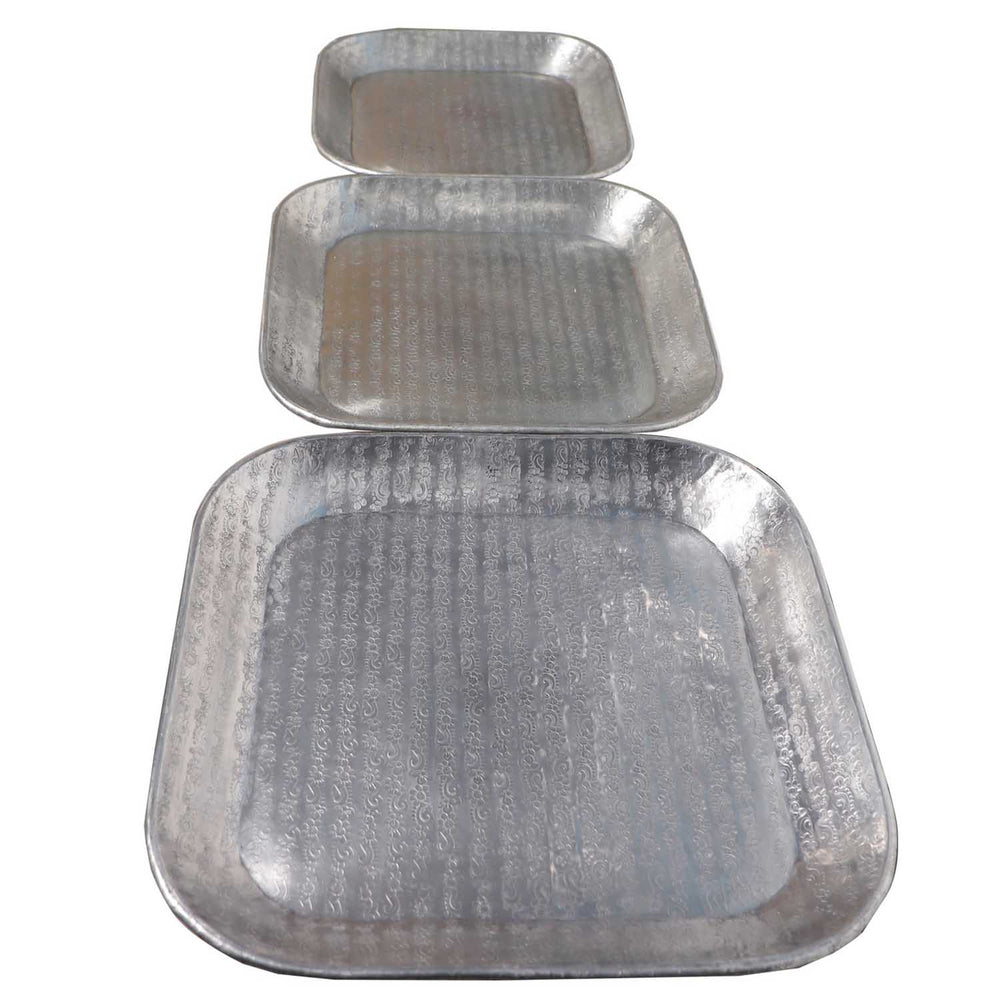 Our aluminum trays add a special oriental touch to your kitchen or living room. The smaller trays are designed to fit inside the larger one for convenient storage. Larger serving tray for spacious portability, perfect size for any meal and tableware, brings convenience to your kitchen and dining room. In addition to serving drinks and appetizers, breakfast, you can also use these trays to display candles, glasses, and other decorations on a daily basis.