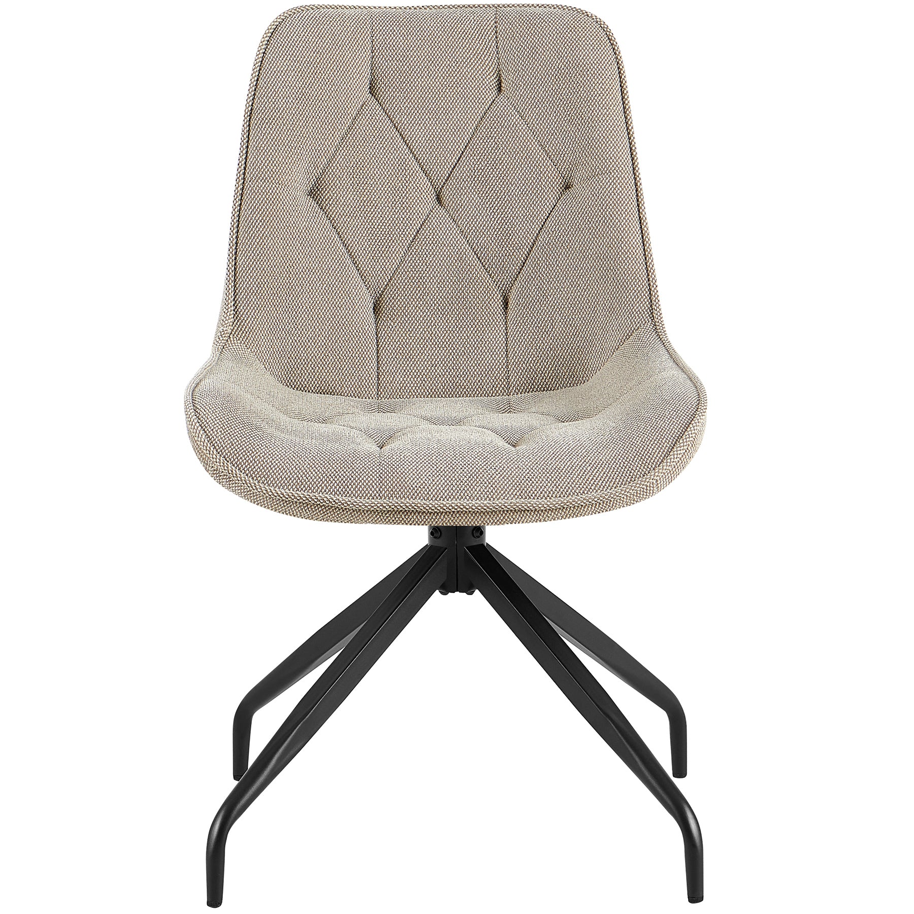Frontansicht des Polsterstuhls 360° drehbar in Braun mit schwarzem Metallgestell – eleganter Esszimmerstuhl mit Rautensteppung und bequemer Sitzform