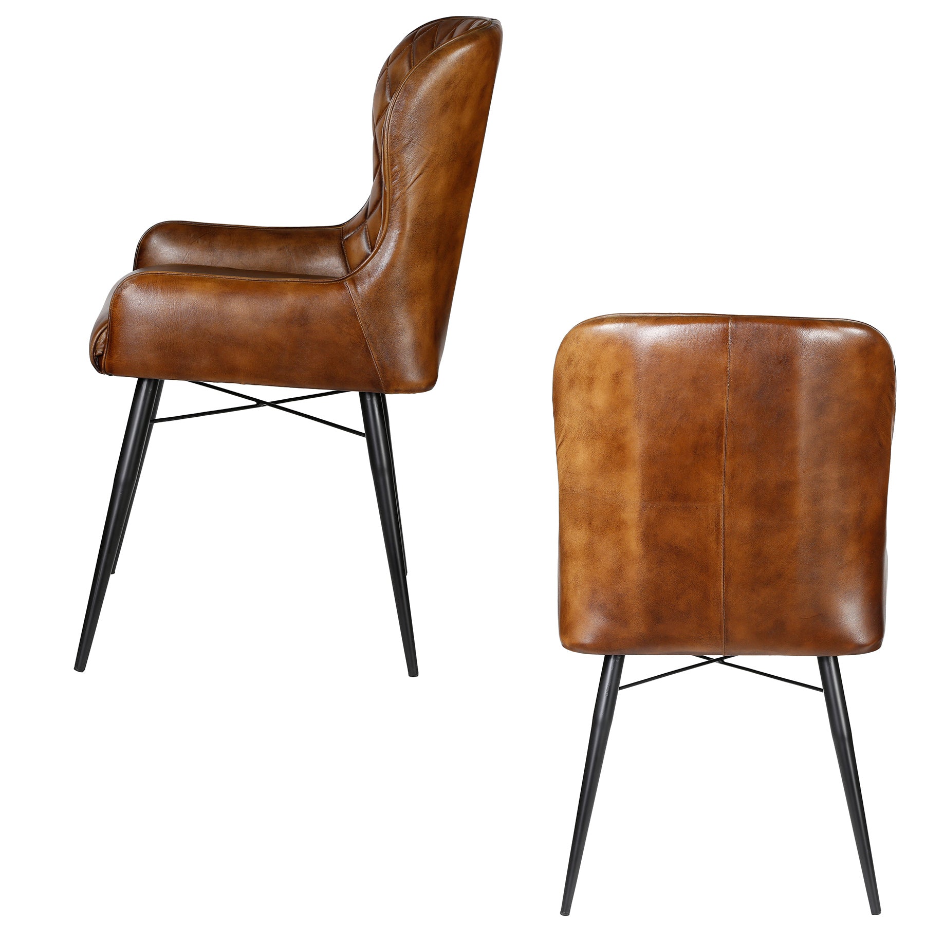 Feines Echtleder in Antikbraun, sanft geschwungene Linien und eine edle Rautensteppung: Dieser Stuhl bringt handwerkliche Qualität und ruhige Eleganz in Dein Zuhause.