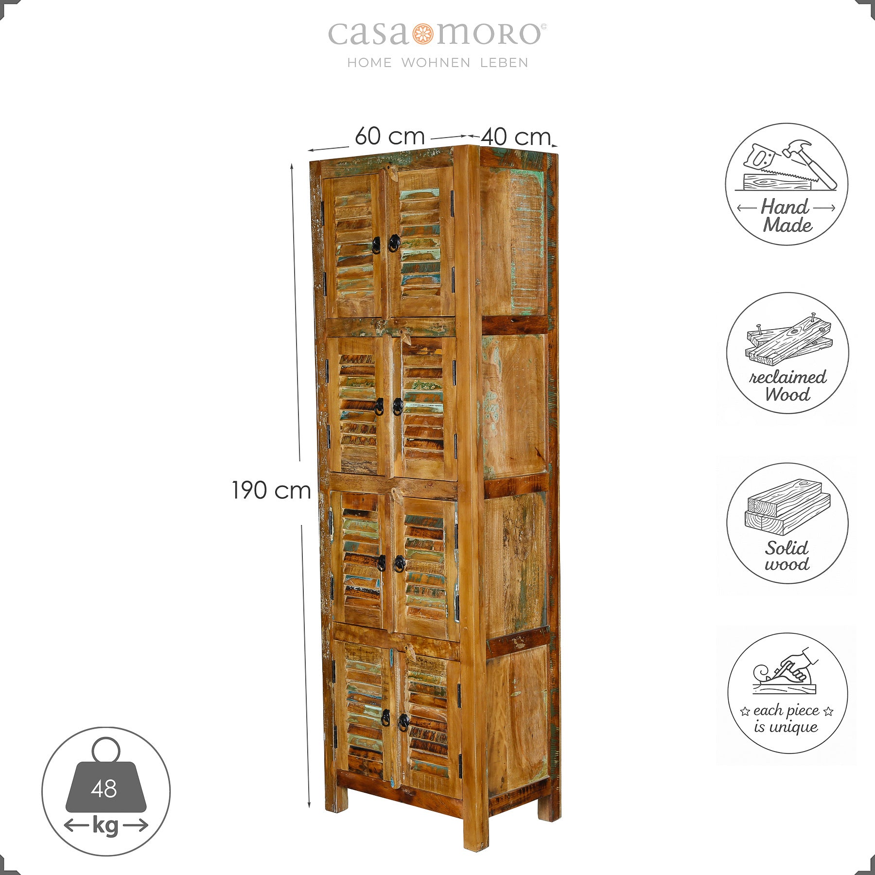Each cabinet is handcrafted from solid reclaimed wood and is truly unique.